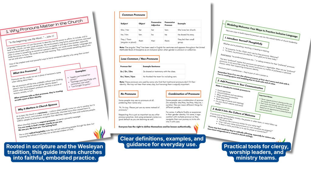 Rooted in scripture and Wesleyan theology, this guide explores why pronouns matter in Christian community, how to use them with clarity and care, and how church leaders can model practices that reflect God’s justice, hospitality, and expansive love.